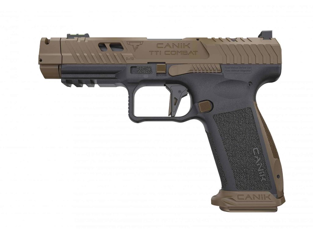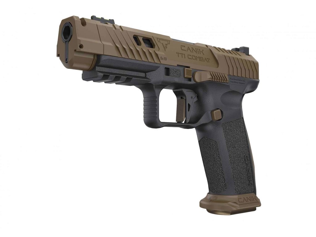 CANIK TTI COMBAT – BRONZE je prémiová optic ready samonabíjecí pistole v ráži 9mm Luger od tureckého výrobce CANIK SUPERIOR FIREARMS navržená Taranem Butlerem a inspirovaná zbraněmi z filmové série John Wick, které vznikaly ve společnosti Taran Tactical Innovations. Tato zbraň byla vyrobena s důrazem na ergonomii, spolehlivost, výkon a design, což z ní dělá ideální volbu pro náročné střelce i fanoušky Johna Wicka. TTI CIMBAT má portovanou hlaveň o délce 4,6“ (117 mm) s patentovaným rychloupínacím kompenzátorem QUICK-DETACH, který výrazně redukuje zdvih a zpětný ráz zbraně, díky tomu je dosaženo lepší kontroly nad zbraní při rychlé střelbě a opakovaných výstřelech. Odlehčený závěr je doplněn přípravou pro montáž optických mířidel. Nízkoprofilové osazení kolimátoru je možné kolimátory řady MECANIK, Trijicon SRO, RMSc, RMRcc, a jinými za použití montážní destičky. Rám zbraně je polymerový s výraznou texturou pro zajištění pevného úchopu. Pistole je vybavena laděnou plochou spouští s 90° chodem, světlovodnou muškou a rozšířenou zásobníkovou šachtou typu MAGWELL pro rychlé přebíjení. Zbraň je dodávána v odolném plastovém kufru s certifikátem a pamětní mincí ve stylu JW, která symbolizuje spolupráci navázanou meci CANIK SUPERIOR FIREARMS a TARAN TACTICAL INNOVATIONS.