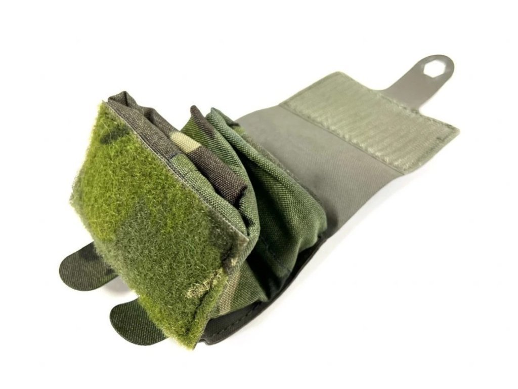 CG ODHAZOVÁK MEDIUM je skládací odhazovák s Molle vazbou 2x2 (průvlek 50 mm), dnem Heavy Mesh síťoviny o velikosti 21x16x8 cm a váze 95 g.