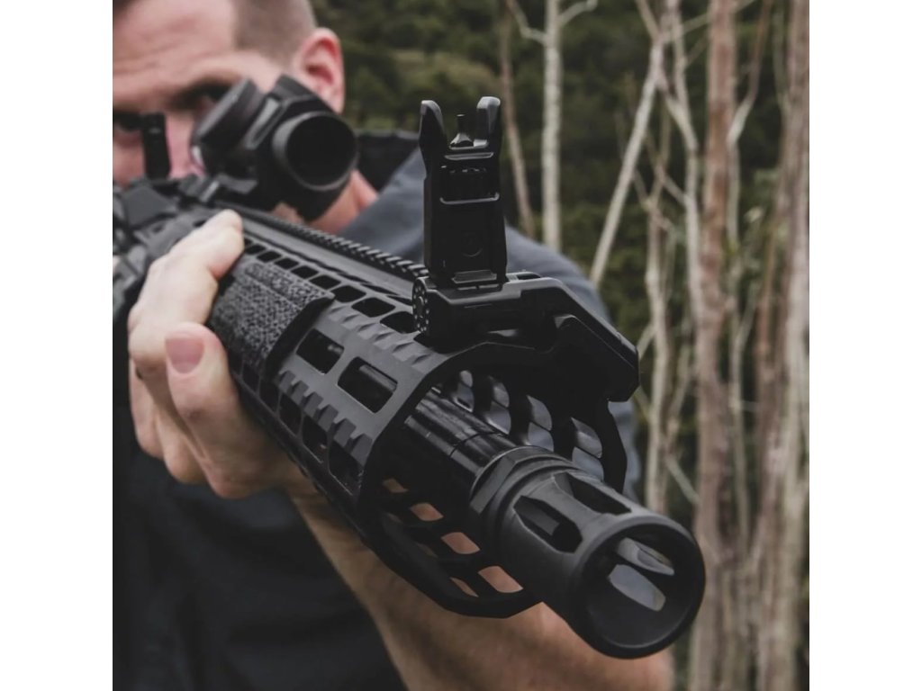 Kvalitní záložní ocelová sklopná mířidla pro použití na boku zbraně. Mířidla jsou připevněná pod úhlem 45 stupňů na pravé straně zbraně.
