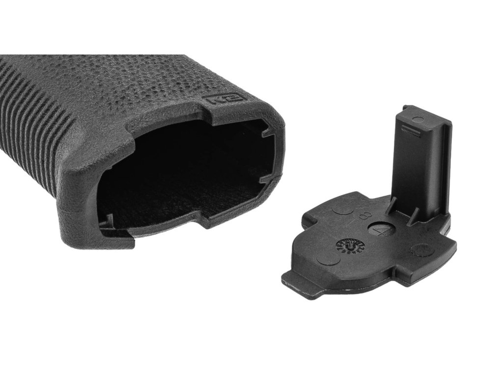 Jednoduchá pistolová rukojeť s vylepšenou ergonomií poskytující jistější a pohodlnější úchop než standardní Mil-Spec rukojeť.
