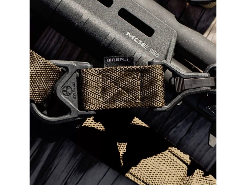 Magpul popruh MS3 Gen 2 – coyote je univerzální taktický řemen, který lze snadno přepínat mezi jednobodovým a dvoubodovým uchycením. Nabízí vysokou pevnost, nízkou hmotnost a maximální odolnost díky karbidonitridovaným ocelovým karabinám s pojistkou proti nechtěnému otevření.