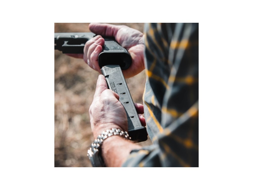 Magpul PMAG 27 GL9 je lehký a odolný polymerový zásobník pro pistole Glock v ráži 9×19 mm s kapacitou 27 ran. Patentovaný samomazný podavač z polymeru (obsahující 2 % teflonu) a kvalitní nerezová pružina zajišťují spolehlivé podávání i při intenzivním provozu. Zásobník je snadno rozebiratelný pro čištění a údržbu, přičemž konstrukce klade důraz na trvanlivost a nízkou hmotnost — ideální volba pro střelce hledající spolehlivý náhradní nebo rozšířený zásobník pro Glock.