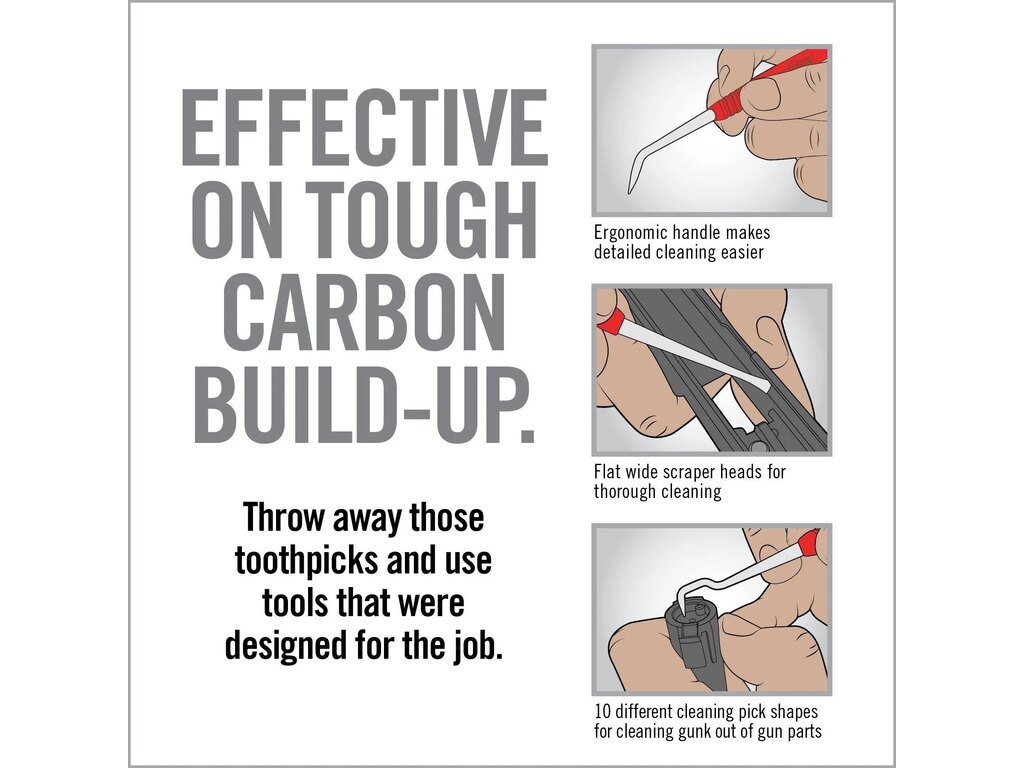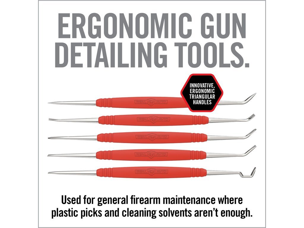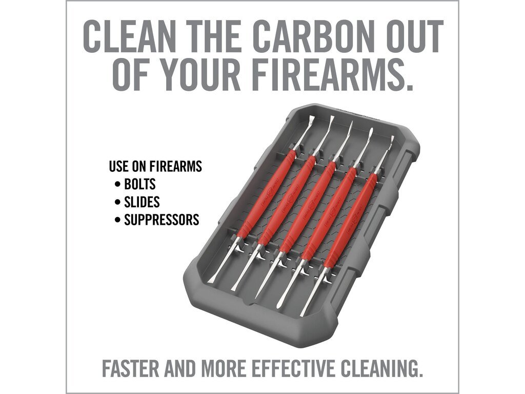 Souprava 5 ocelových škrabek pro čištění a údržbu zbraní od amerického výrobce Real Avid. Tyto praktické nástroje byly speciálně navržené pro snadné odstranění nečistot a karbonu z těžko přístupných míst.