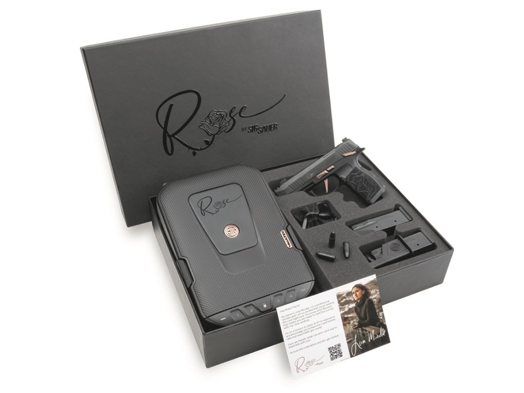 Sada ROSE P365 obsahuje speciální edici pistole P365 v ráži 9mm Luger, vlastní uzamykatelné úložné pouzdro (trezor) ROSE Vaultek a přístup ke kompletní sérii video školení ROSE krok za krokem, která vám umožní učit se vlastním tempem, spolu s online komunitou ROSE.