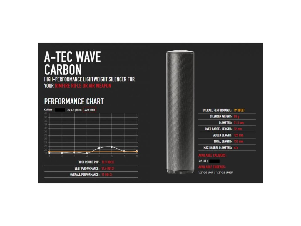 Tlumič A-TEC WAVE CARBON .22LR - závit 1/2"- 20 UNF