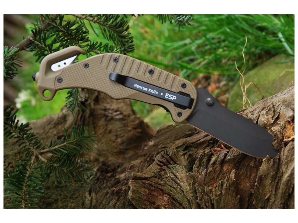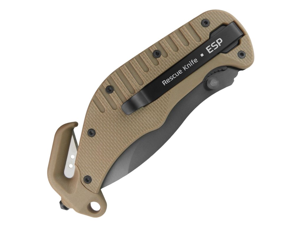 Do ruky dobře padnoucí nůž ESP plní běžnou funkci nože, ale nabízí i možnost dostat se například v případě autonehody do nebo z auta a přeříznout bezpečnostní pás. V nouzi lze také odstranit pomocí řezače oděv u raněného, aniž bychom riskovali jeho pořezání.